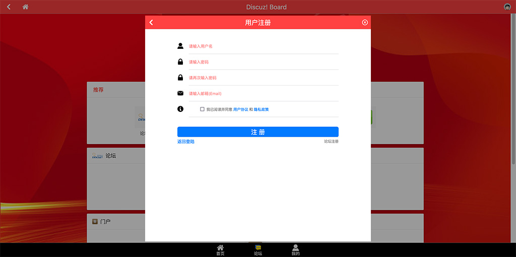 8. 论坛关闭注册功能不影响本插件注册,可以有效防止机器注册