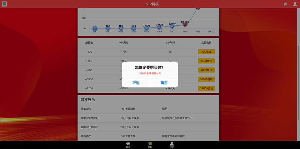 8.与直播间打通,可以设置达到相应VIP等级才可以观影