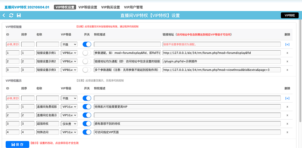 可轻松设置论坛、门户、群组、插件等站内任何页面地址需要达到指定VIP等级才可以访问